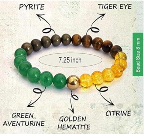 ◆ Money Magnet Bracelet Citrine, Pyrite,Tiger Eye, Green Aventurine for Wealth,Income Abundance & Prosperity- Healing Natural Gemstone Reiki Bracelet for Men & Women