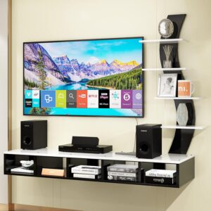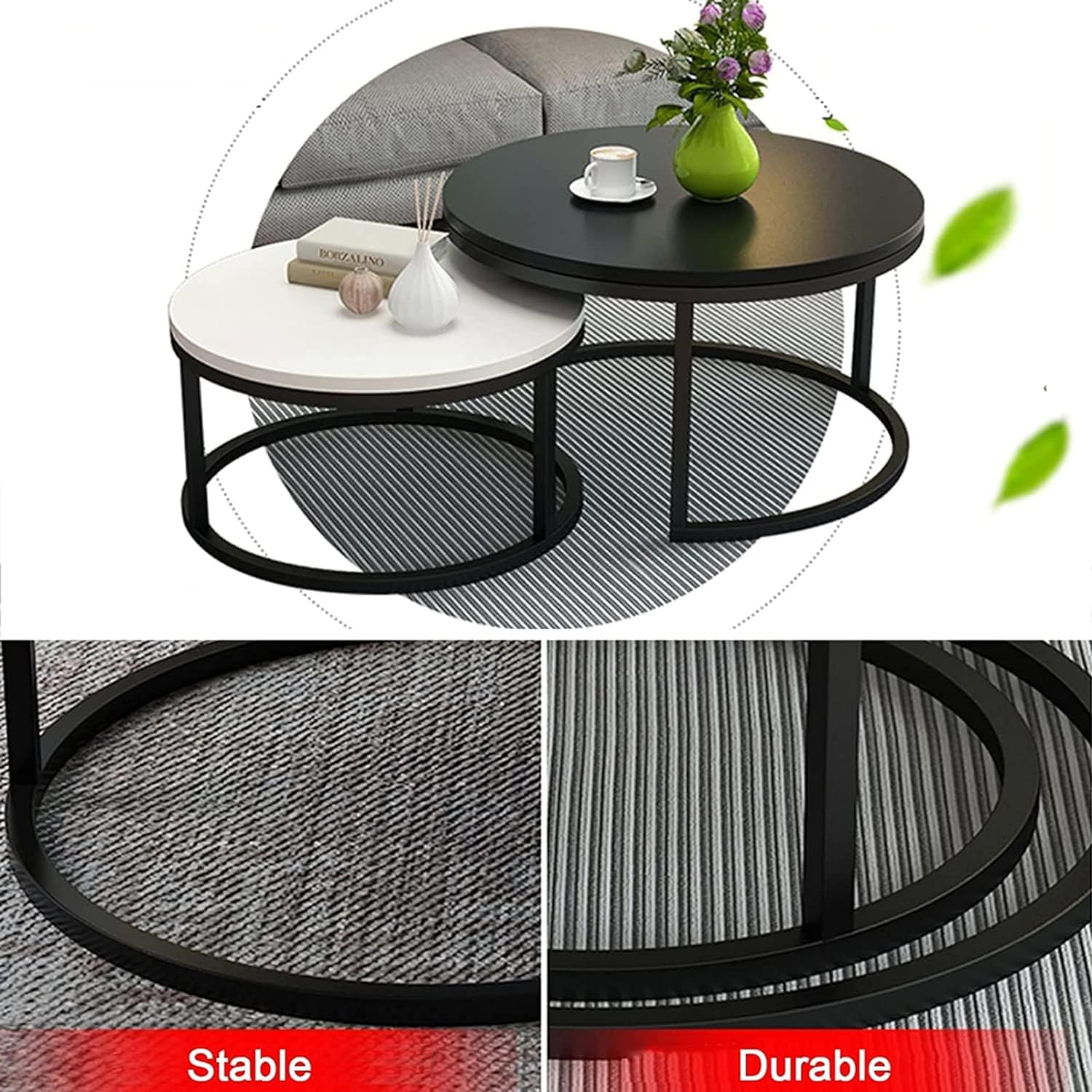 Abroshine Arts Modern Nesting Coffee Table Set of 2 for Living Room, Balcony, Garden, Round Table with Wood Side, Sturdy Metal Frame-White Black