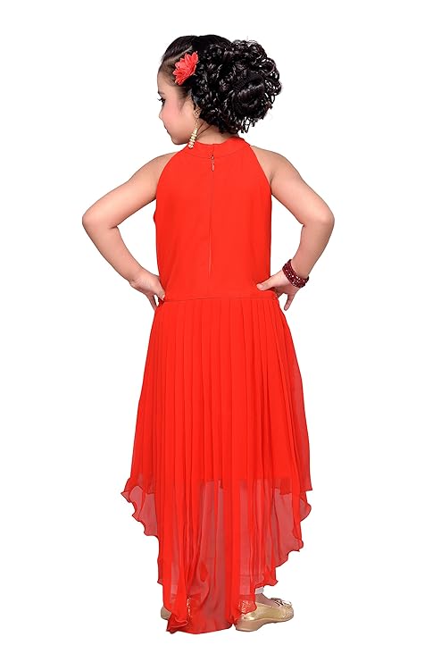 Adiva Girls Georgette Solid High Low Knee Length Dress for Kids