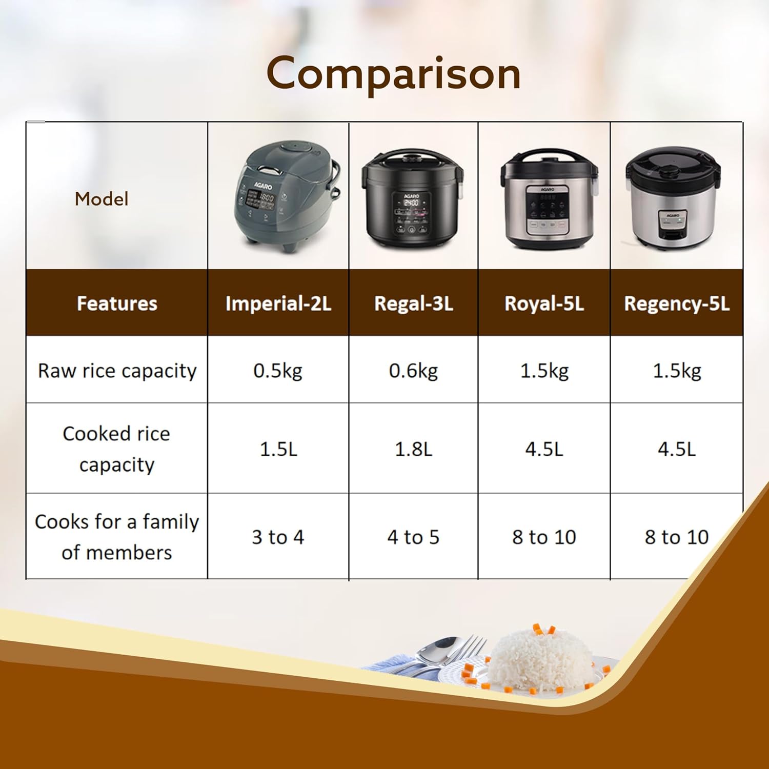 - Comes with 3 Litres 5-layer thick ceramic coated inner bowl with rice level lines