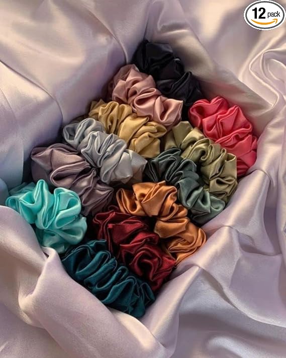 Akshved Luxury Satin Scrunchies for Women/Girls, 12 COLORS