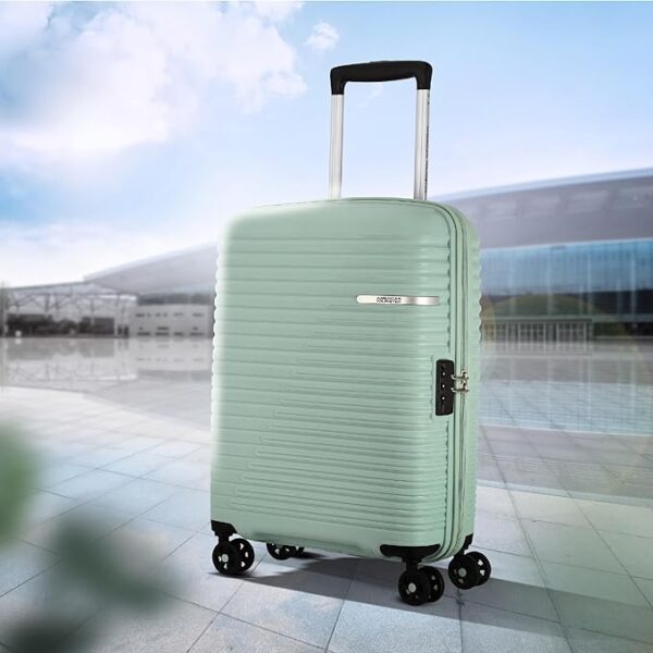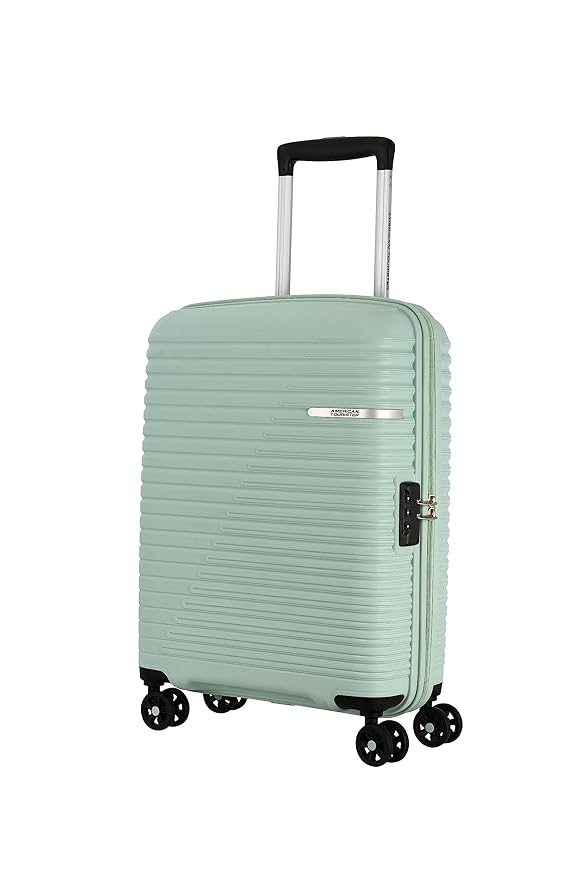 American Tourister Liftoff 55 cms Small Cabin Polypropylene Hard Sided Double Spinner Wheel Luggage/Trolley Bag/Suitcase (Seafoam Blue)