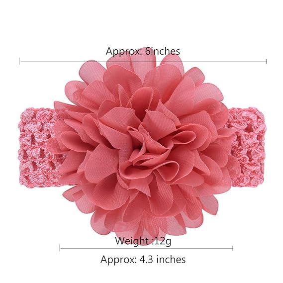 【Size】Flower size:4.3″(11 CM),Headband size:12″(30 CM)girth. it allows a baby headband to expand to fit your growing baby! This headband will fit all ages.