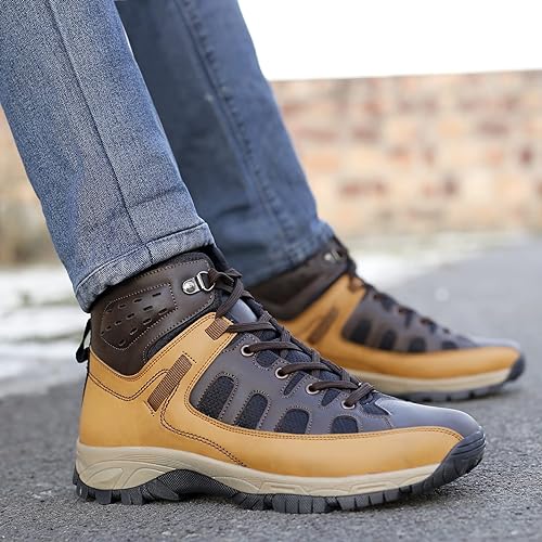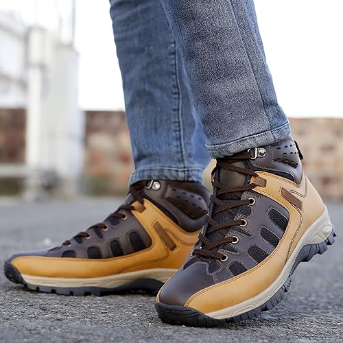 - Mild Waterproof & protection: These men hiking boots features waterproof synthetic leather that keeps your feet cool and dry.The rubber toe cap and the reinforced heel are designed for anti-collision, strenghthening the stability of the shoes which gives your ankle more protection.