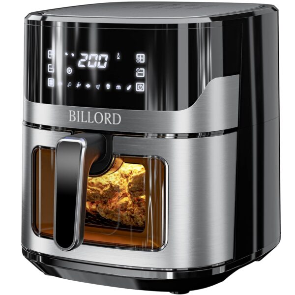Billord Air Fryer for Home, 6.5 litre Airfryer Oven Healthy Cooking, Large Air Fryer Stainless with Non-stick Frying Pot, 8in1 Multi-Food Quick & Easy Meal Oiless Cooker with LCD Digital Touch Sceen