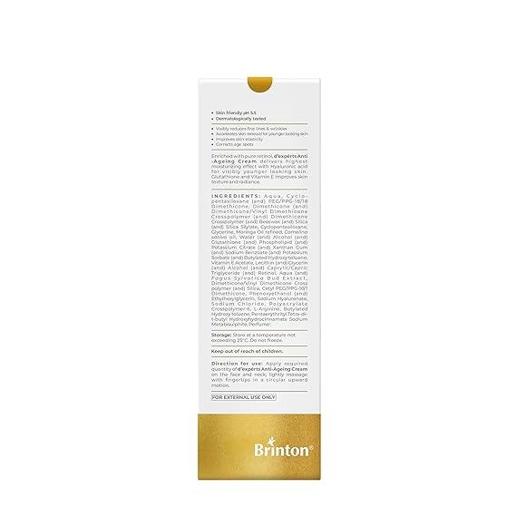 Brinton d’experts Anti-Aging Cream with Retinol, Hyaluronic Acid, Moringa | Reduce Wrinkles, Fine Lines & Age Spots & Skin Lifting | For All Skin Types 30gm