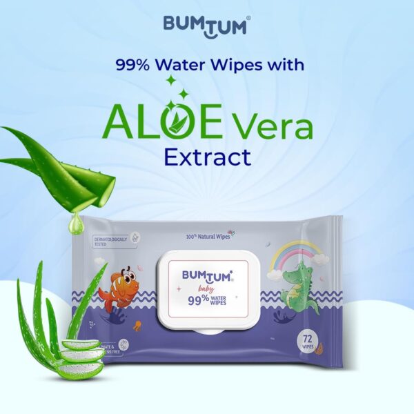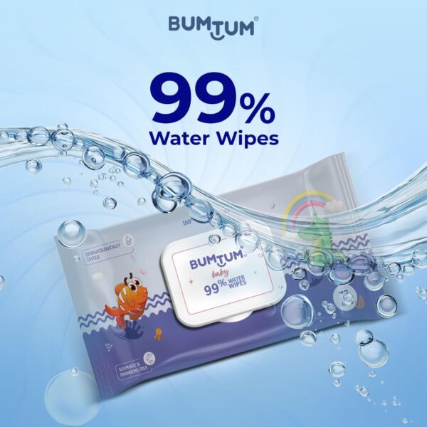 - Balanced pH: The Bumtum baby water wet wipes are crafted especially to clean the private parts of babies. They are manufactured with utmost care and pH is balanced to match the power of hydrogen to baby skin.