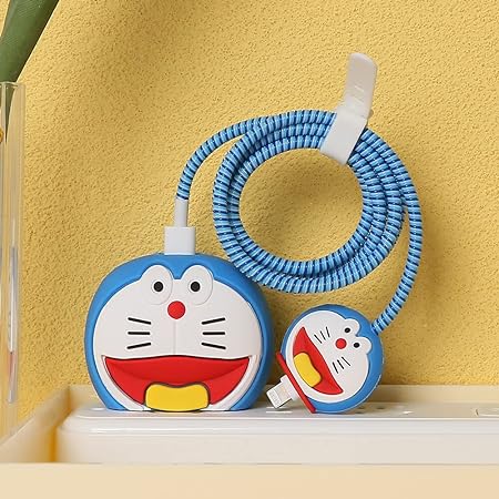 CASENED Protective Case Cover for Apple 20W iPhone USB-C Power Adapter Charger and USB Lightning Cable | 3D Cartoon Character (Doraemon)