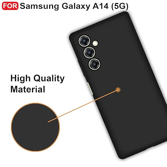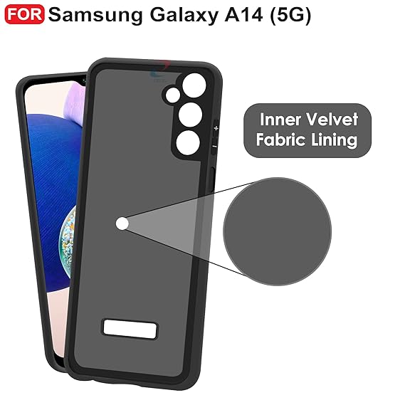 CEDO Samsung Galaxy A14 (5G) Back Cover | Camera Bump Protection & Inner Velvet Fabric Lining | Ultra Slim Matte Soft Rubberised Case Cover (Black)