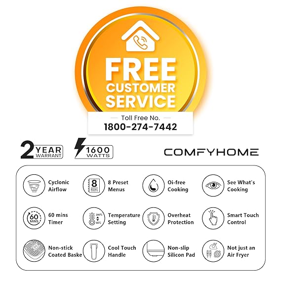 🍪【𝟕𝟑𝟎-𝐃𝐚𝐲 𝐖𝐚𝐫𝐫𝐚𝐧𝐭𝐲】Rest easy with our 730-Day Warranty, offering comprehensive coverage for mishaps and performance guarantees. Should you encounter a manufacturer defect or any concerns, simply click “GET HELP WITH ORDER” under your order ID. Our local customer service team for comfyhome airfryer will promptly address your issue within 24 hours. Your satisfaction is our top priority.