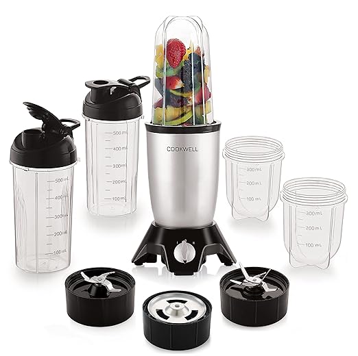 Cookwell Bullet Mixer Grinder 600 Watts (5 Jars, 3 Blades, Silver) Acrylonitrile Butadiene Styrene