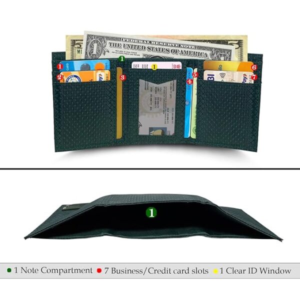 ✅ SLIM FUNCTIONAL DESIGN : A wallet that will meet your everyday needs. The wallet comes with 1 Note Compartment, 7 Business/Credit Card Slots & 1 Clear ID Window. If you need lots of room this is the wallet for you!