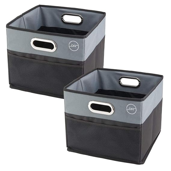 DOUBLE R BAGS Universal Vehicles Collapsible Cargo Kids Toy Storage Box Car Seat Accessories for Car Trunk Organizer for Car Dicky SUV Trunk Home-use No-Slip Velcro Bottom Black and Grey (Pack of 2)