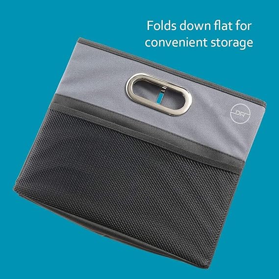STABLE STORAGE AND PORTABLE CONVENIENCE – wide front mesh pocket provides added storage, metal handles on the folding storage bins make it easy to carry in and out of the car, hook and loop grip strips on the bottom keep the CargoCube car organizers from sliding or tipping, even on tight turns