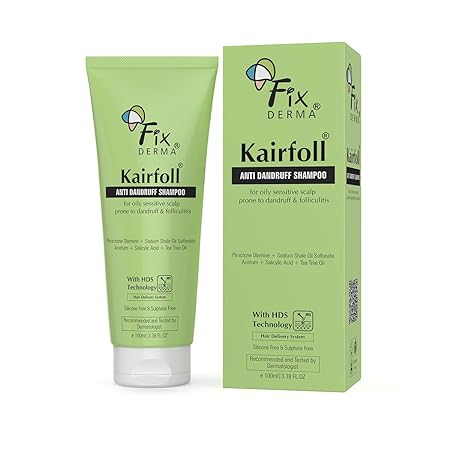 Fixderma Kairfoll Anti Dandruff Shampoo for Oily Sensitive Scalp Prone to Dandruff & Folliculitis | Anti Dandruff Shampoo for Women & Men | Salicylic Acid for Hair Fall | Sulphate Free Shampoo – 100ml