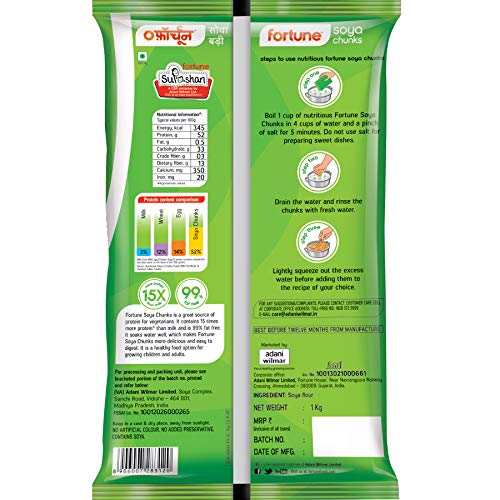 Fortune Soya Chunks, 15x more protein than milk, 1kg (Item weight may vary)