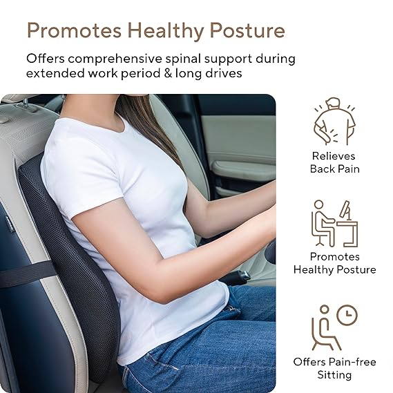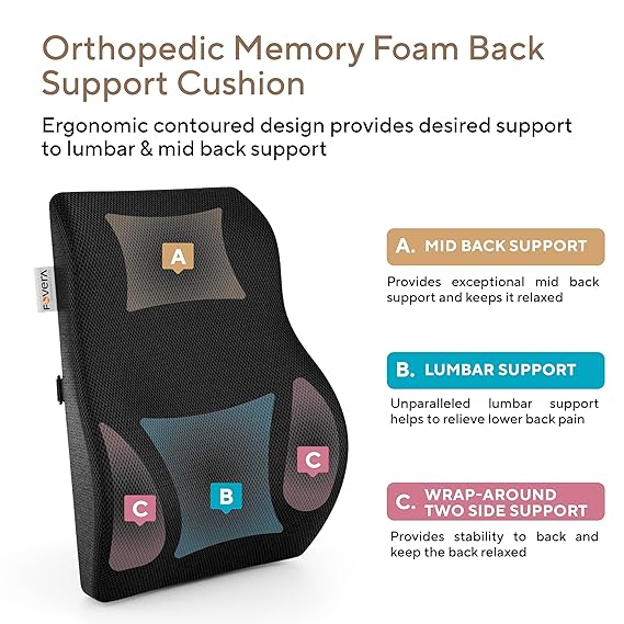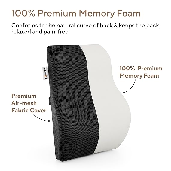 100% PURE MEMORY FOAM: FOVERA back rest for chair is made from 100% premium heat-responsive memory foam which conforms to the natural curve of your back and keeps your back relaxed & pain-free.