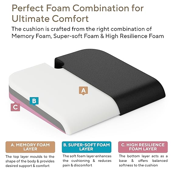 FOVERA Car Seat Mesh Memory Foam Orthopedic U-Cut Out Wedge Cushion (80 kg, Black)