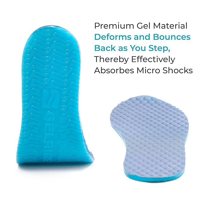 ADVANCED GEL INSOLES: GELRIDE Classic Insoles are made of 100% premium gel material. A massaging gel technology provides all-day comfort and support. Walking with this insole offers optimal cushioning. An anti-sweat fabric prevents foot sweating while keeping microbes at bay.