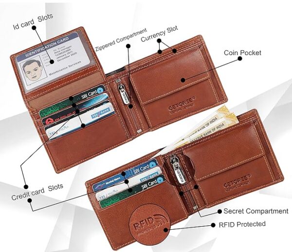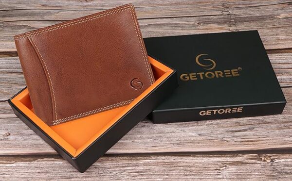 GETOREE Teak Tan RFID Blocking Leather Wallets for Men