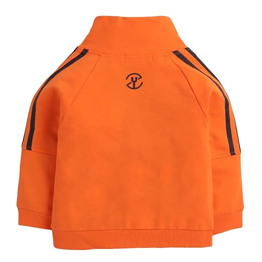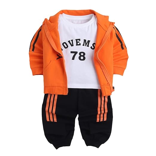 Hopscotch Baby Boys Cotton Text Print T-shirt, Jacket and Jogger Set in Orange Color