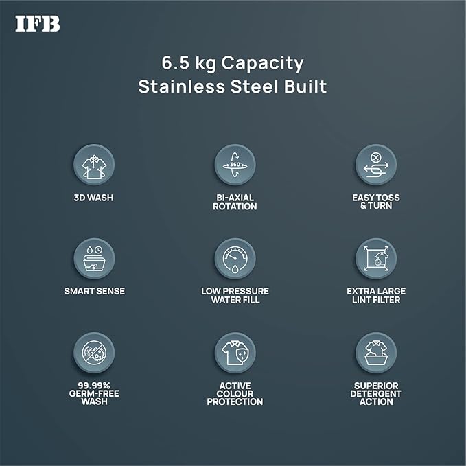720 RPM: Higher spin speeds helps in faster drying;Key Features: Aqua Energie Device for Water Softening, Better Detergent Action & Color Protection, Active Color Protection, Lint Tower Filter, Biaxial 360 degree Rotation for cleaning every part, Triadic Pulsator for Deep Cleaning, SmartSense