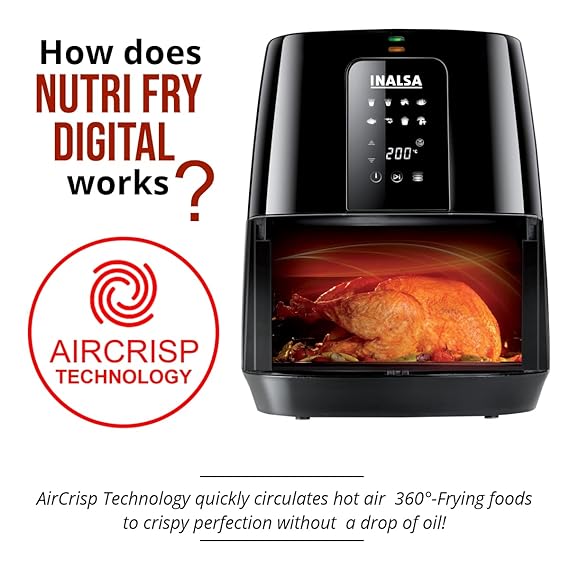 INALSA Air Fryer Nutri Fry Digital 4.2L|Imported Premium Range|Designed In Europe With International Health & Safety Standards|1400W with Smart AirCrisp Technology|Free Recipe book|2Yr Warranty