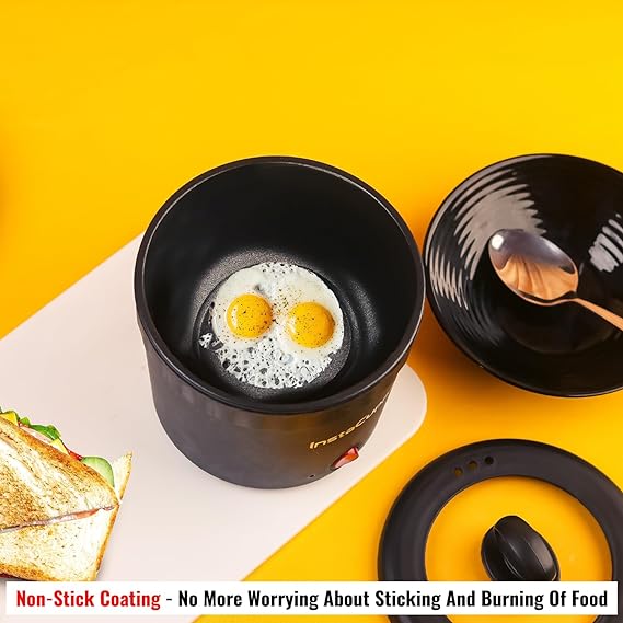 InstaCuppa Portable Multi Cook Electric Kettle with Non-Stick Inner Pot, Dry Boil Protection for Safety, Compact & Light Weight, Ideal for Boiling Milk, Tea, Coffee & Eggs, 1 Liter, 450 Watts, Black