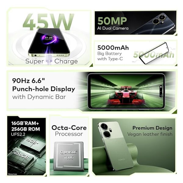 itel P55+ 4G | Upto 16GB RAM with Memory Fusion & 256GB ROM| 50MP AI Dual Rear Camera & 8MP Front Camera| 45W Charger with 5000 mAh Battery | Dynamic Bar|UFS 2.2| Meteor Black