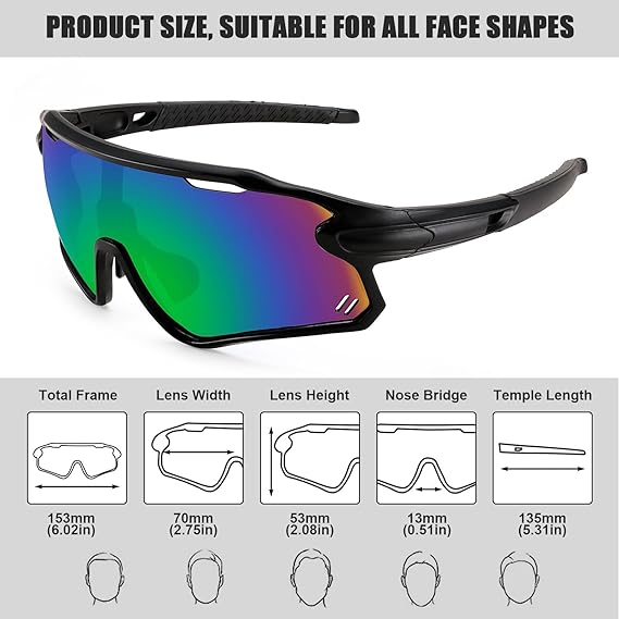 「Anti Slip Design」Stability in motion is crucial. Our glasses are equipped with anti slip nose holders and ear bar designs, ensuring that they can stay firmly on your face and not slip off due to intense exercise.