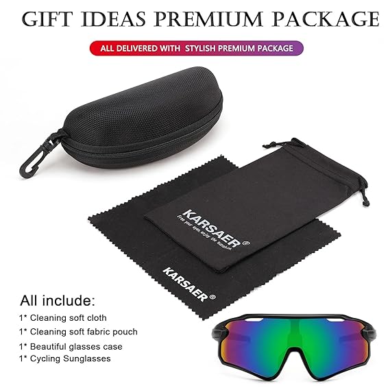 「Comprehensive Protection」The Karsaer Vision sports glasses feature a surround design that effectively resists wind, sand, dust, and ultraviolet radiation. No matter what outdoor activities you engage in, this pair of glasses can provide comprehensive protection for your eyes.