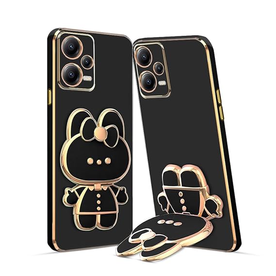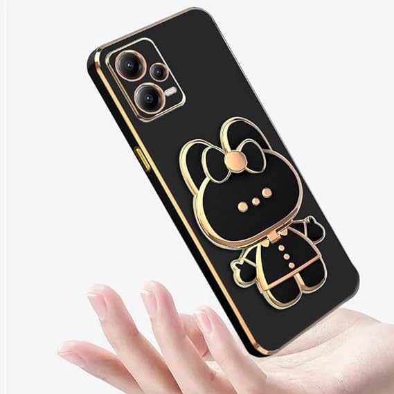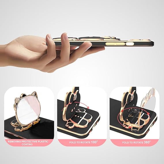 KARWAN®️ 3D Cat Back Case and Cover with Stand Compatible for Poco X5 5G | Stand and Mirror | Camera Protection | Electroplated | Folding Stand -Black