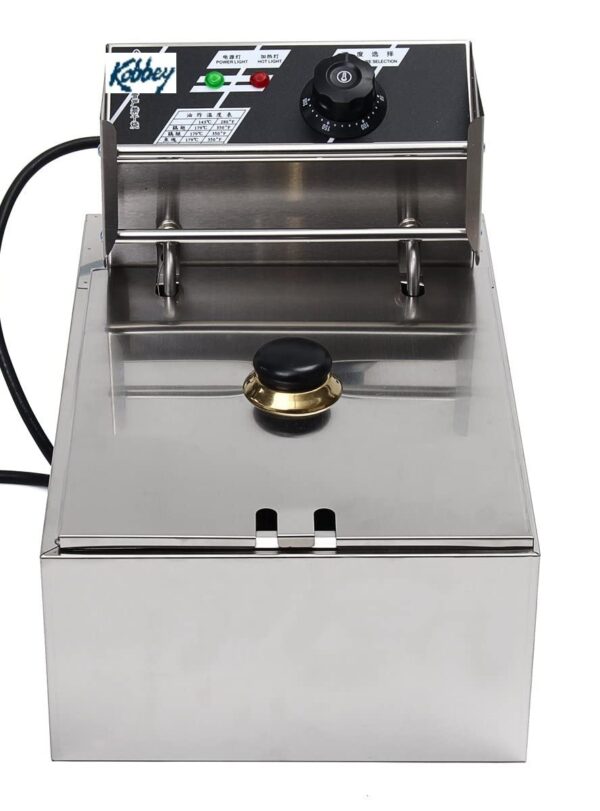 - stainless steel body kobbey deep fryer machine for home and commercial applications .Thermostat for accurate temperature setting . Lid cover for preventing the boil oil splashing . Fryer basket with plastic handle to prevent scald . Residue plate for filtering out the dregs