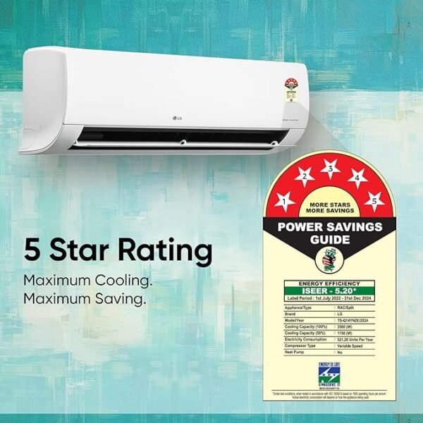 Energy Rating: 5 Star – Best in class efficiency | Annual Energy Consumption: 521.20 units. ISEER Value: 5.20 (Please Refer Energy Label on Product Page or Contact Brand for More Details)