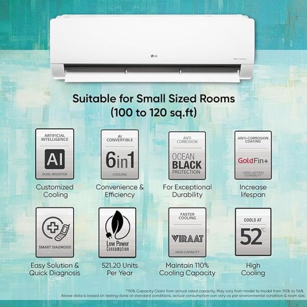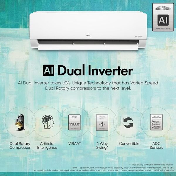 Key Features: Dual Inverter Compressor, AI Convertible 6-in-1 Cooling, VIRAAT Mode, HD Filter with Anti-Virus Protection, ADC Sensor, Cools at 52⁰ C, Stabilizer free operation within 120V-290V voltage range , Magic Display for temperature, Noise Level (21 dB (A) Indoor)