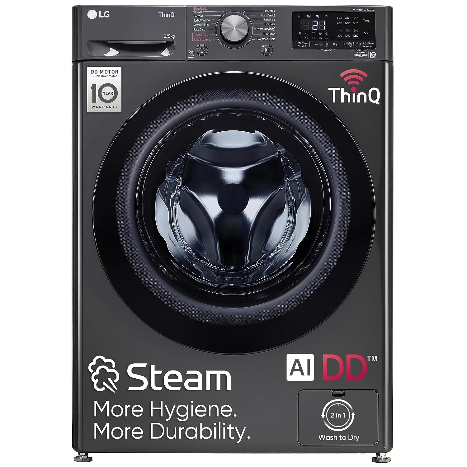 Capacity: 9 KG (Wash) & 5 KG (Dry): Suitable for large families