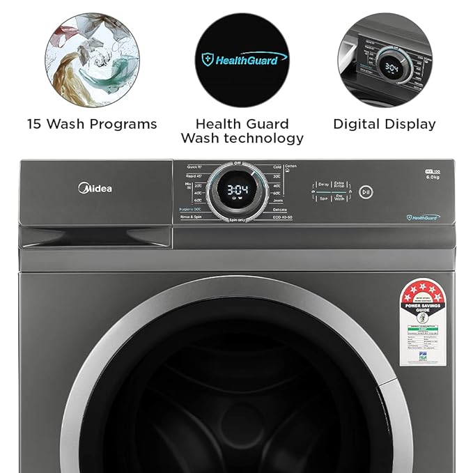 Midea 6 Kg Fully Automatic Front Load Washing Machine (MF100W60/T-IN Silver, MF100 Series), Standard