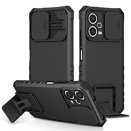 MOSHKING Thermoplastic Polyurethane Shieldpro: Ultimate Protection Back Cover For Poco X5 5G With Sliding Camshield Stereoscopic Holder&Military-Grade Defense,360° Safeguard Mobile Phone Case ,Black