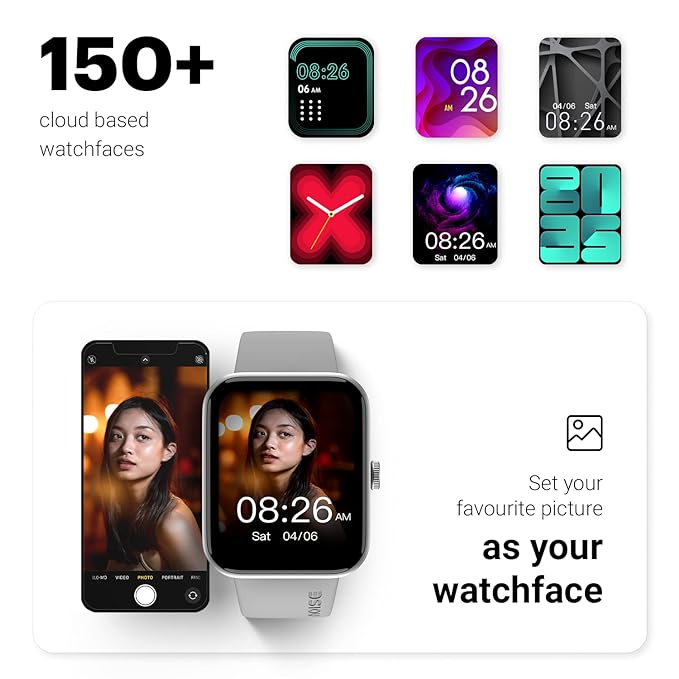 Sharp and bright display: The 1.69’’ TFT display with 240*280px and 500 nits brightness ensures visual treat every time you look at the watch.