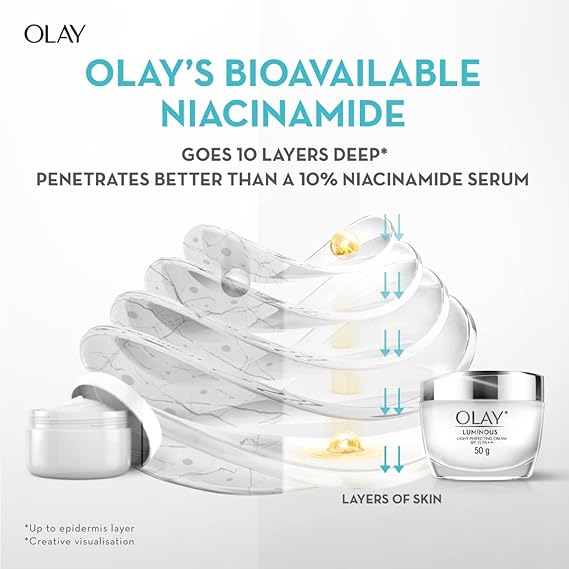 BIOAVAILABLE RANGE THAT PENETRATEPacked with concentrated, powerful ingredients such as Niacinamide (Vitamin B3), the Olay Luminous Face Cream provides radiance by penetrating 10 layers deep into your skin’s surface, giving you that glow from within.