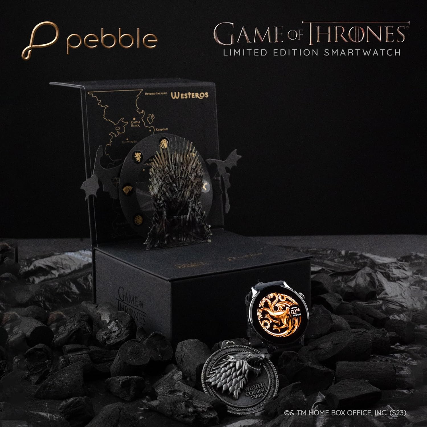 Pebble Game of Thrones Limited Edition Luxury Smartwatch – 1.43” (3.63 cm) Amoled Always-On Display, Feather Touch, Bluetooth Calling, Responsive Watch Faces, 24/7 Health Suite, AI Voice Assistance