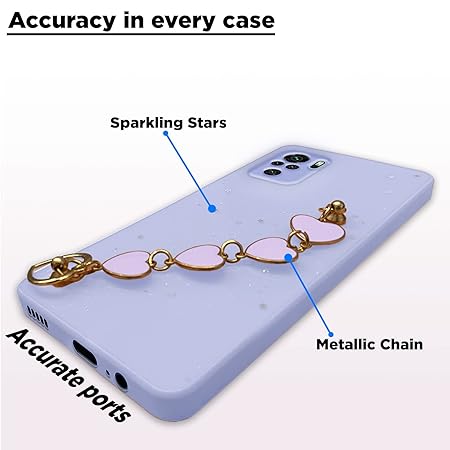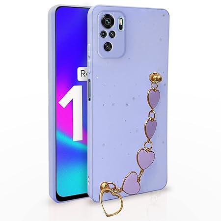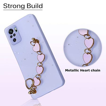 Pikkme Redmi Note 10 / Note 10s Back Cover for Girls | Heart Shaped Metal Chain Blocks | Sparkling Soft TPU | Case for Redmi Note 10 / Note 10s (Purple)