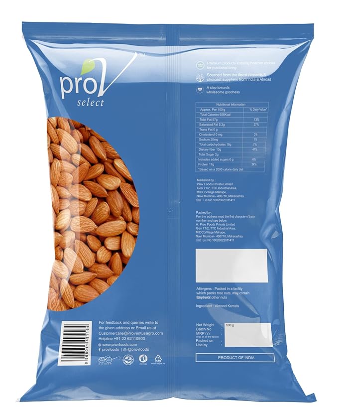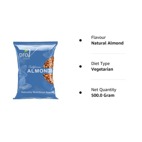ProV Select – Almond 500 gm | Raw Badam Dry Fruit | High Protein Snack and Super Healthy Nuts | Amazing Quality Alomond | Sourced from California | Crunchy and Fresh taste | Chef Sanjeev Kapoor Choice Brand |