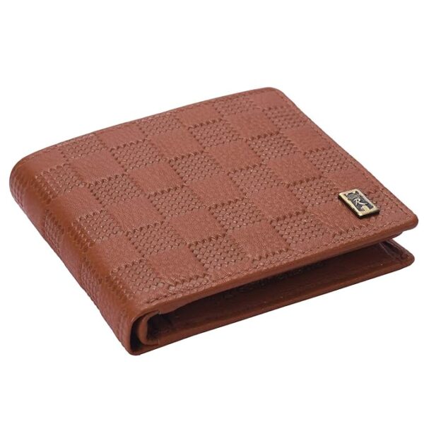 ROLANDO Inas Men’s Printed Bi-Fold RFID Vertical Flap I.D Currency Coin Slide Pocket Stylish Leather Wallet (Tan)