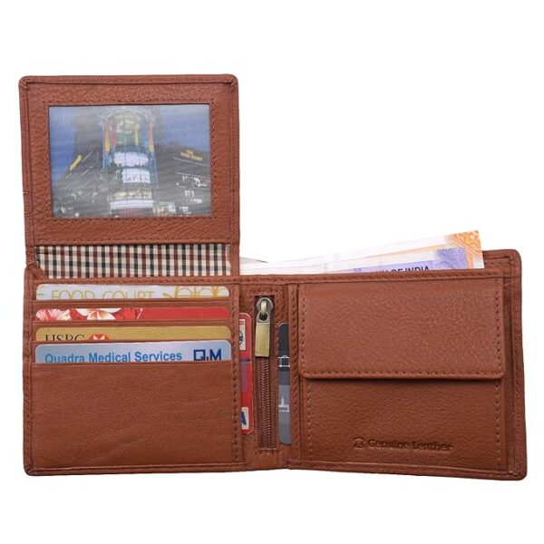 Features Of The RFID Leather Wallet: 2 X Currency Note Compartment Tested With Indian Currency Notes | 1 X Change Pocket With Push Button | 8 X Card Slots For EC Cards, Large Enough To Accommodate 2 (Or More!) Cards Per Slot. | 2 X Slide Pockets Inside, Large Enough To Accommodate Bills, Receipts & Tickets | 1 x Vertical Flip Window I.D Compartment | 1 x Central Vertical Zip Close With Slide-In Compartments On Both Sides | 2 X Sim Card Slot, For Sim Of All Sizes.