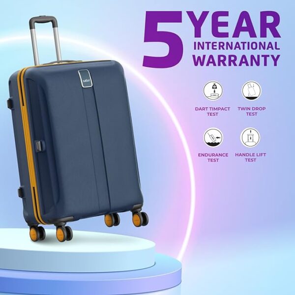 This light weight trolley luggage comes with a Fixed combination Lock, 8 wheels with smooth manoeuvrability, and contrast beading that gives a premium look to the product