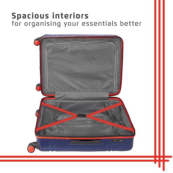 This light weight trolley luggage comes with a Recessed TSA Lock, 8 wheels for smooth manoeuvrability, colored beading & wheel caps that give a premium look to the product