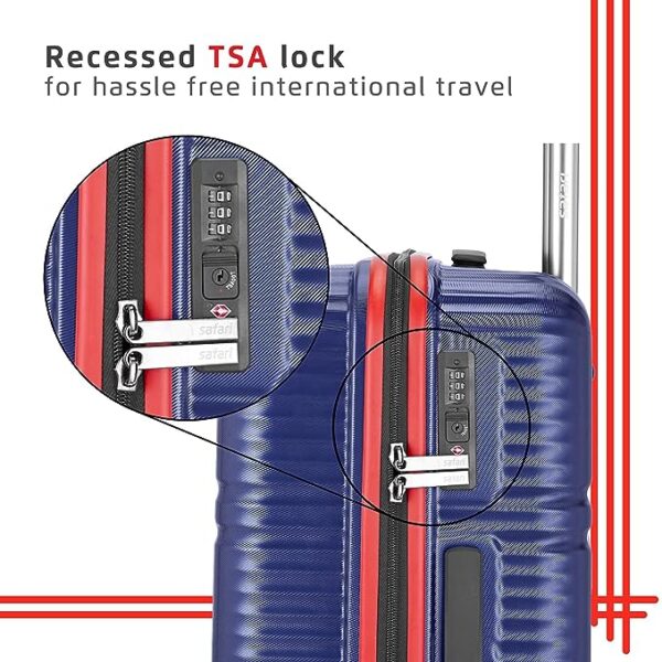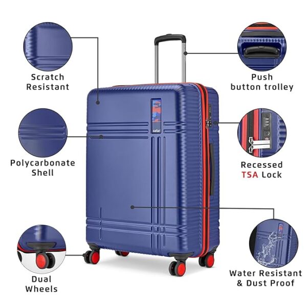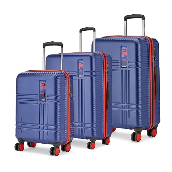 Safari Zany Recessed TSA Lock, 8 Wheels, Hardside Small, Medium & Large Size (Cabin & Check-in) Trolley Luggage Set of 3, Midnight Blue Color 55cm, 67cm & 78cm