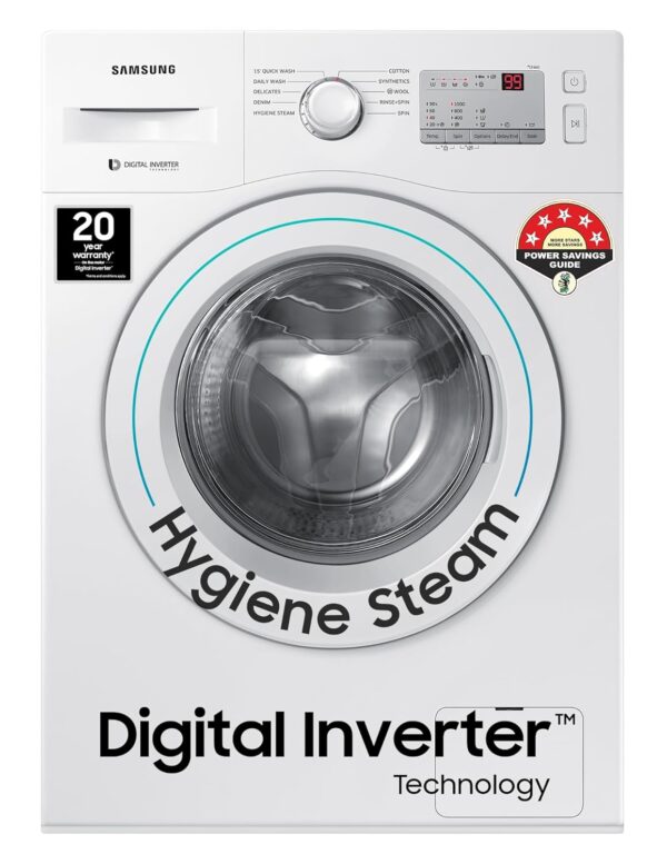Samsung 6 kg, 5 star, Digital Inverter Motor, Fully-Automatic Front Load Washing Machine (WW60R20GLMA/TL, Hygiene Steam, DA WHITE)