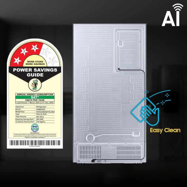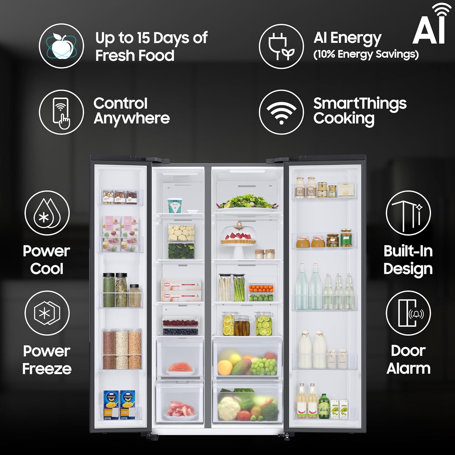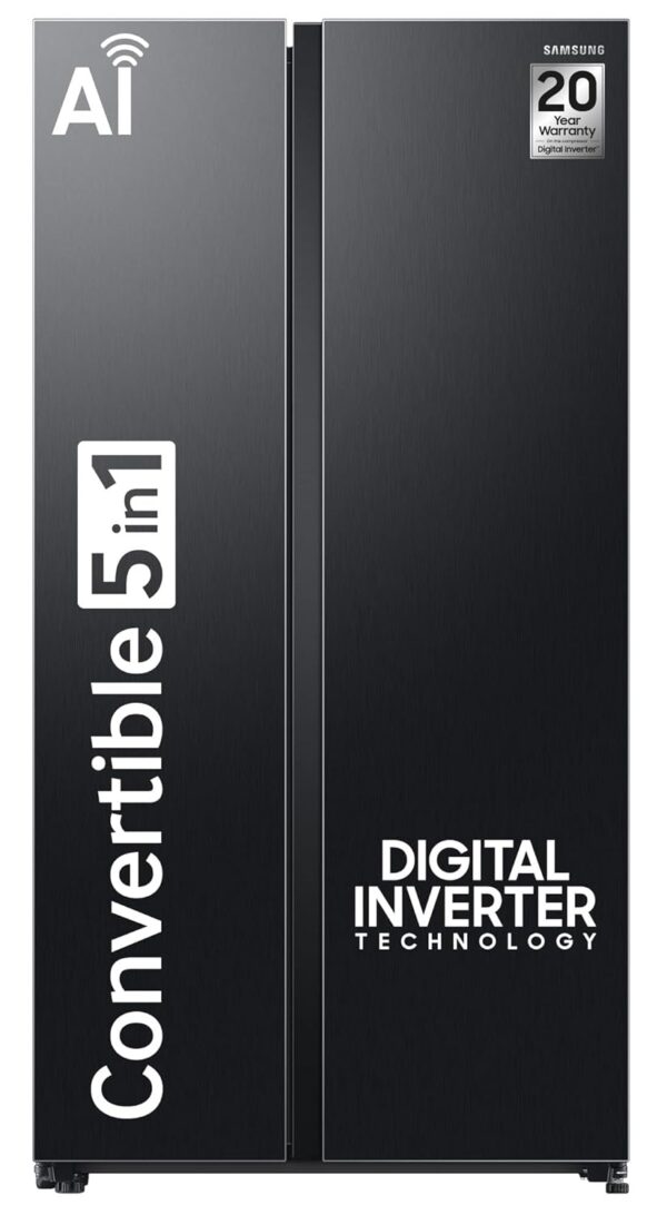 Samsung 653 L, 3 Star, Frost Free, Convertible 5-in-1 Digital Inverter, Side By Side AI Enabled Smart Refrigerator with WiFi (RS76CG8003B1HL, Black Matt, 2024 Model)